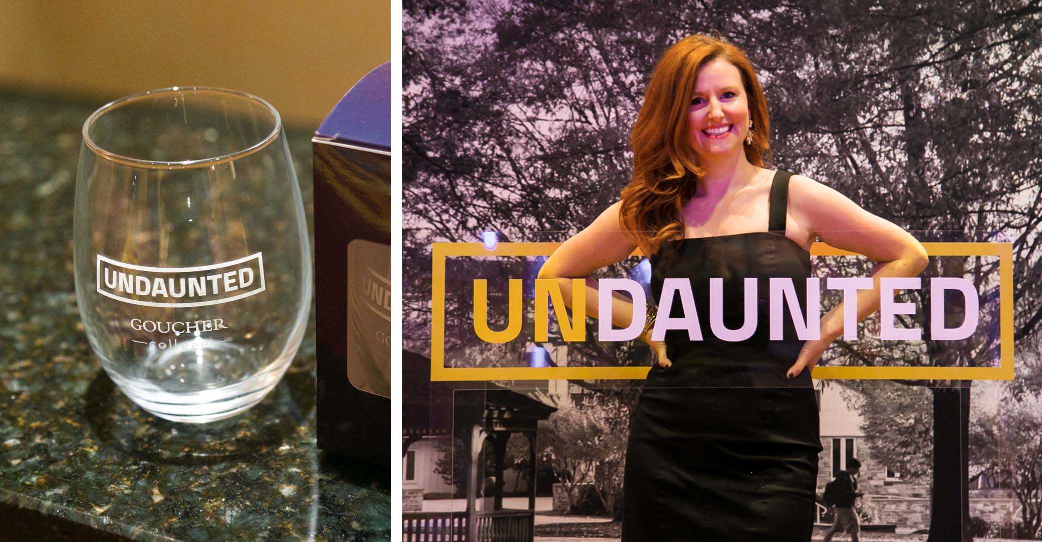 Goucher alumna Mildred Dunnock wears a black feather boa in a striking image used for the Undaunted campaign