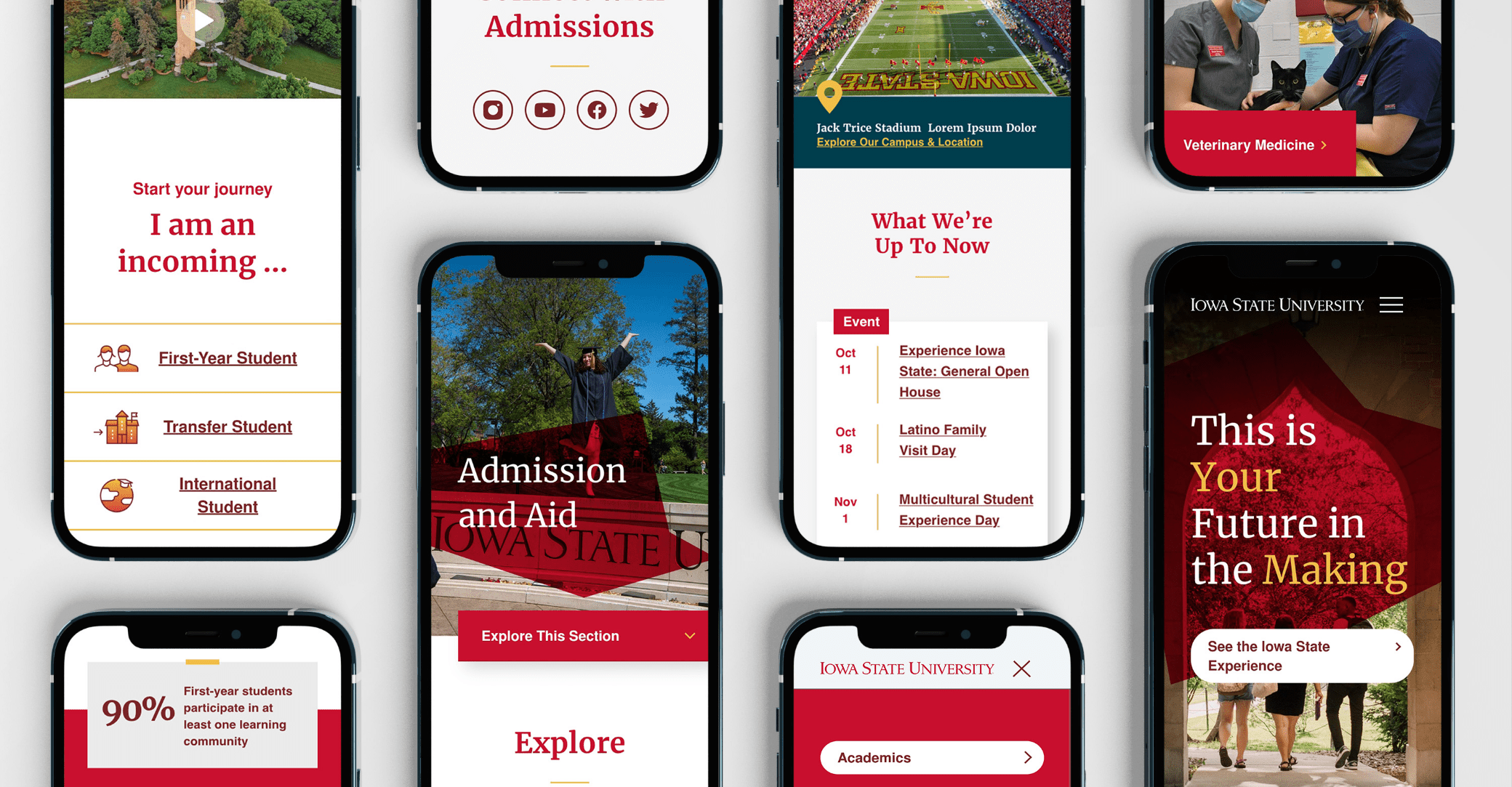 With a new narrative to serve as inspiration, it was time to whip Iowa State’s website into shape with a refreshed UX and IA design that provides users with a compelling way to navigate through all of the amazing things that Iowa State has to offer—a large university with a small feel, focused on learning, building communities, and innovation in a design that’s bold, fun, and easy to navigate. Iowa State is ready to take on the world stage.