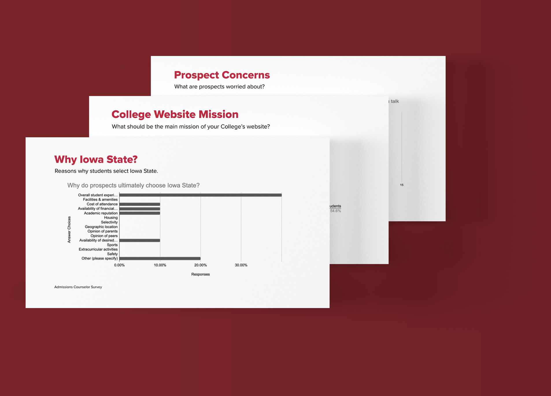 After completing the Discover360 process, idfive uncovered the major roadblocks that hindered Iowa State’s growth beyond the midwest. These were a lack of general awareness beyond those communities, a lack of knowledge of Iowa State’s campus, culture, and research programs, and misconceptions about Iowa State as a place for innovation and a large campus meaning an impersonal collegiate experience.